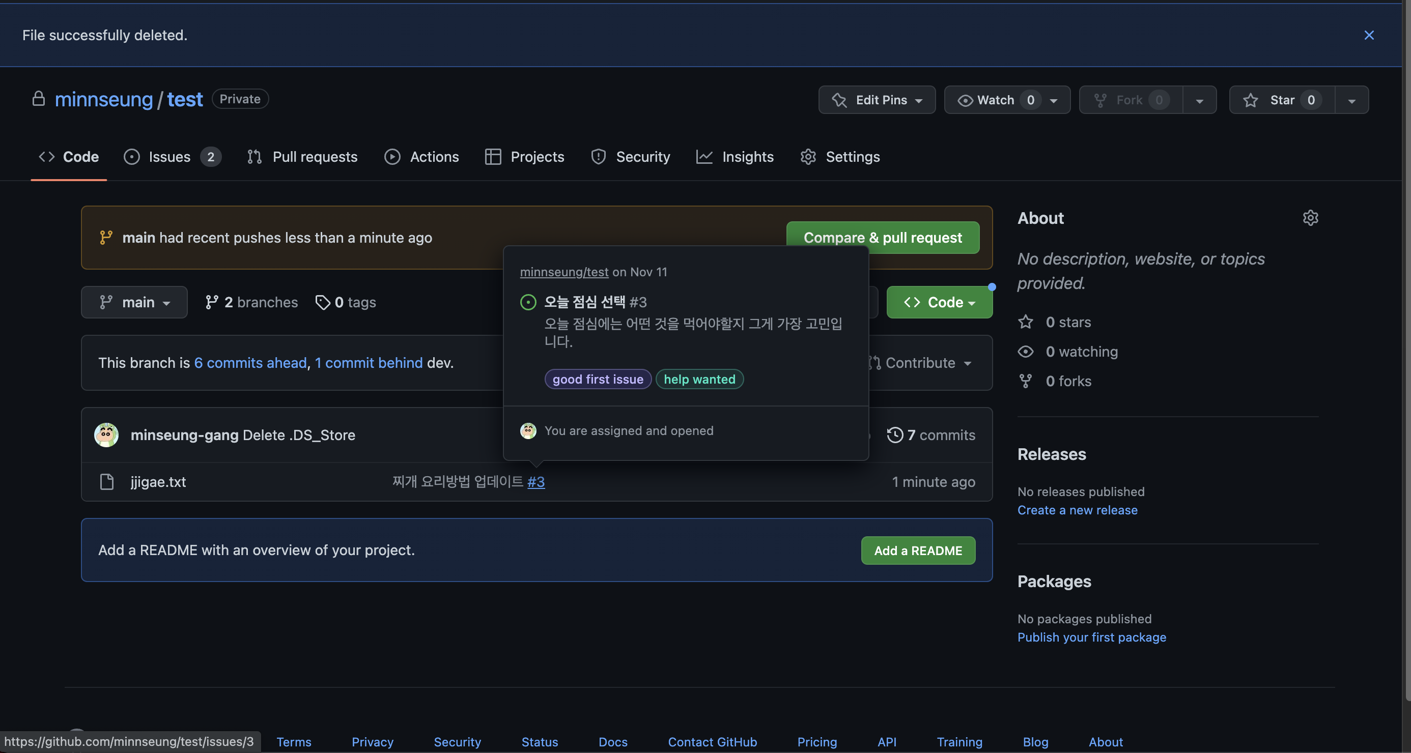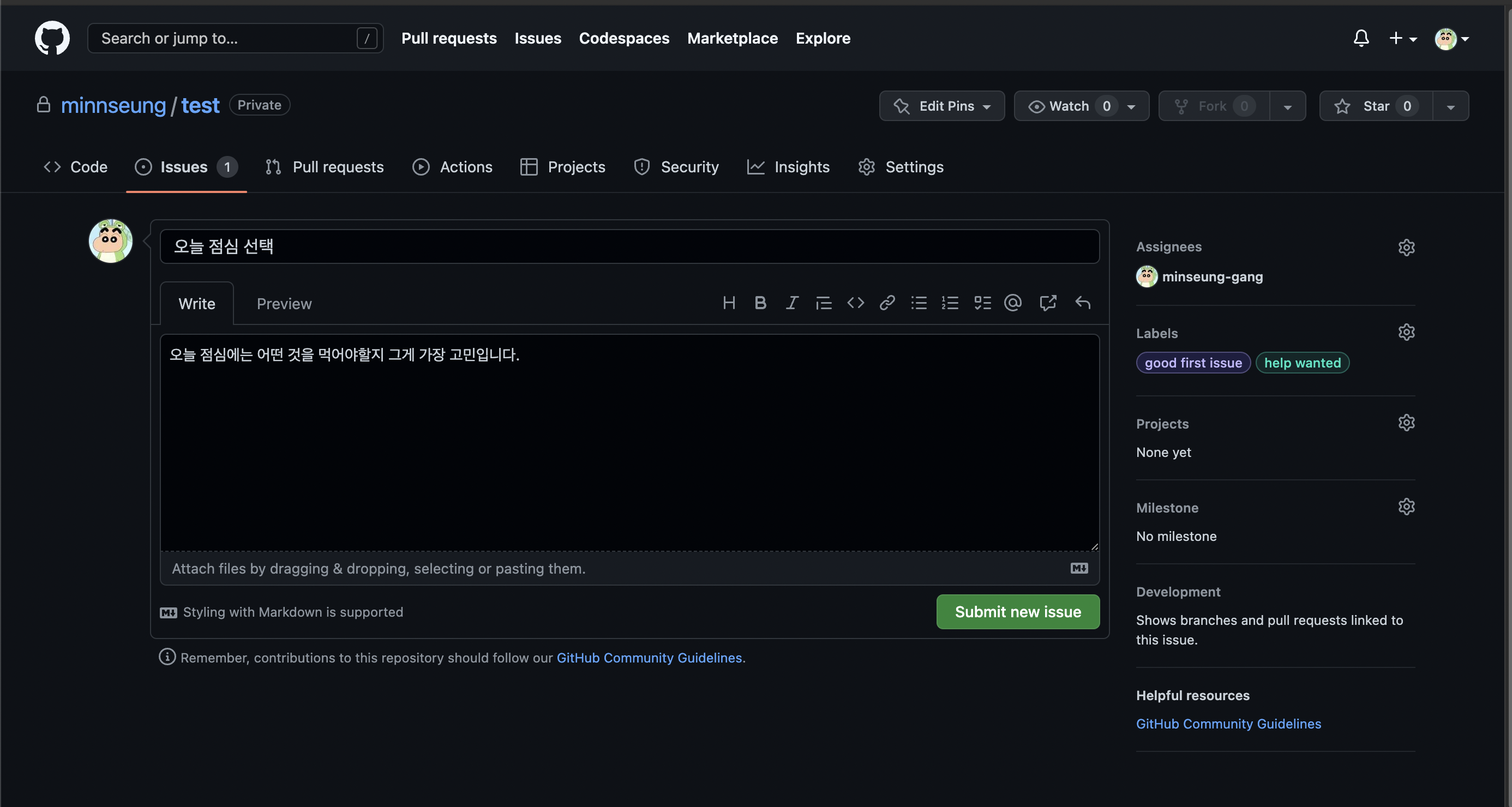 실제 깃에서 이슈화 하는 모습